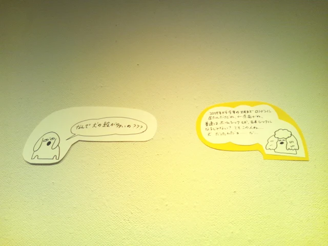 実際、一番始めにどのような展示にするかと決めるところから、そして私を取り巻く犬をメインテーマに展示方法を展開していったところから、どのようにみなさんに楽しんでもらえるか本当に不安と緊張でいっぱいでした(もちろん楽しさは常に忘れませんでしたよ〜)。一度決まっても、考え直し、新たな部分が決まってから原点に戻るという作業の連続でした。次回の展示会のことも考えていますが、もっともっと楽しめる展示会にしたいと思います!